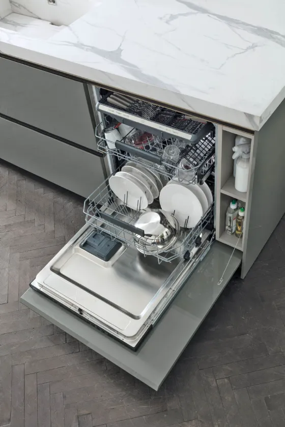 Piena espressione della flessibilità progettuale tipica delle cucine Stosa, Color Trend può essere personalizzata grazie alla scelta di accessori e finiture, così come nella possibilità mixarsi con altri modelli, per dare forma a composizioni originali.